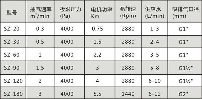 SZA直聯(lián)水環(huán)式真空泵技術(shù)參數(shù):